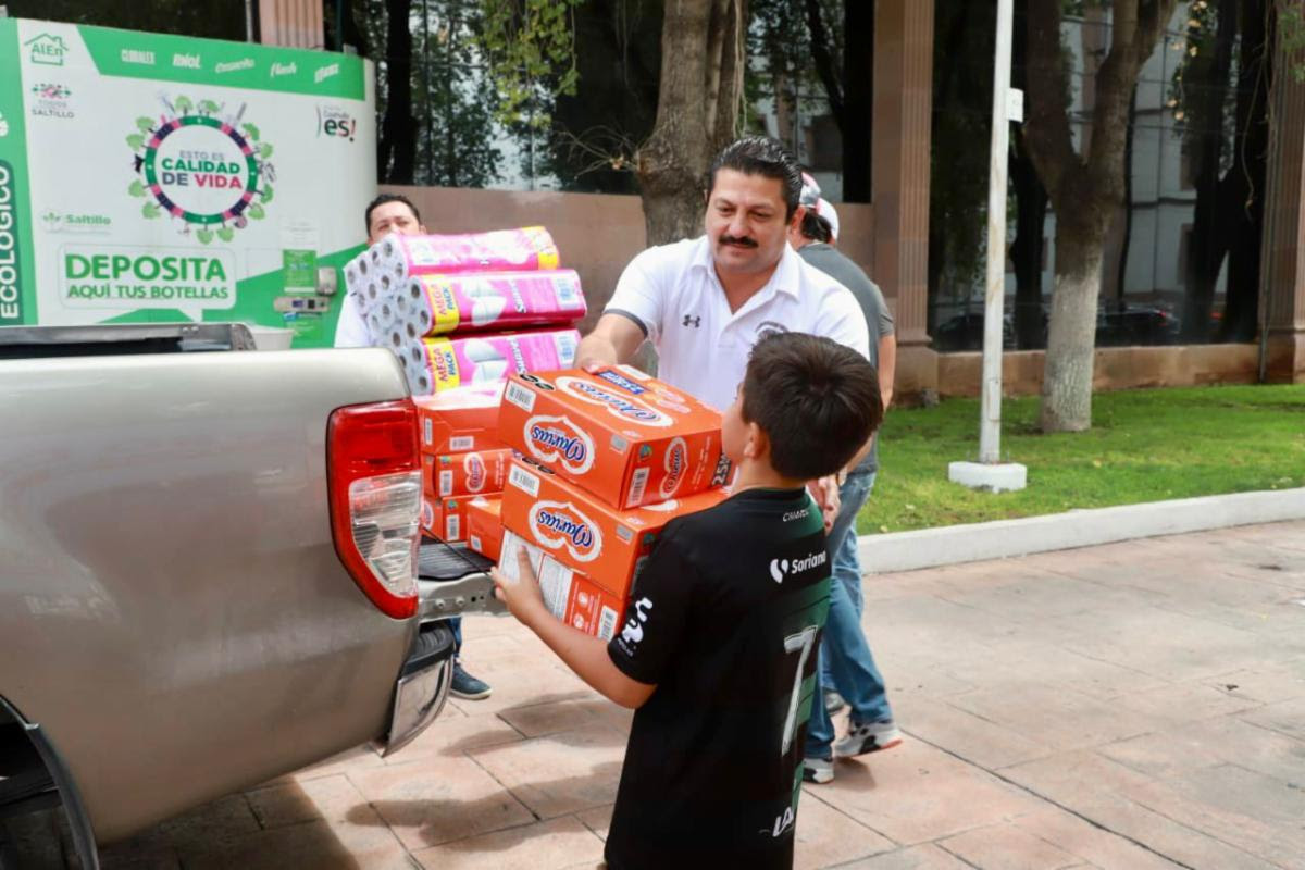 Destacan en Saltillo centros de acopio del DIF Coahuila y Presidencia Municipal para llevar perecederos, ropa y artículos de limpieza a las familias más afectadas