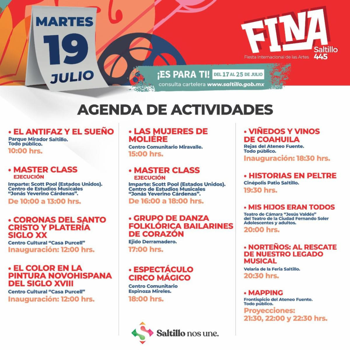 Tres proyecciones diarias, hasta finalizar la Fiesta Internacional de las Artes el domingo 24
