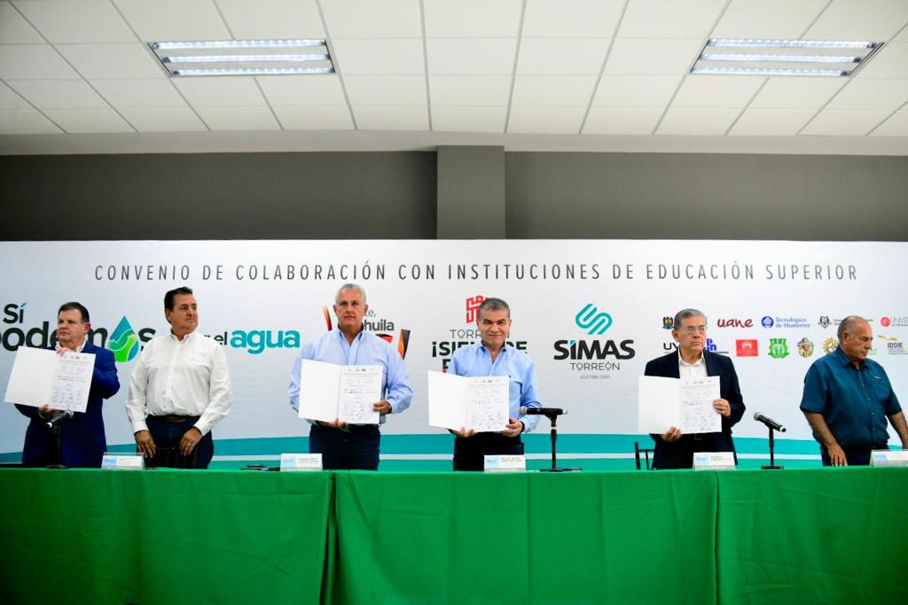 Participa Gobierno estatal en firma de convenio entre Ayuntamiento de Torreón, el Sistema Municipal de Aguas y Saneamiento (SIMAS), Universidades de la Comunidad de Instituciones de Educación Superior de La Laguna (CIESLAG) y la Asociación “Sí podemos cuidar el agua”