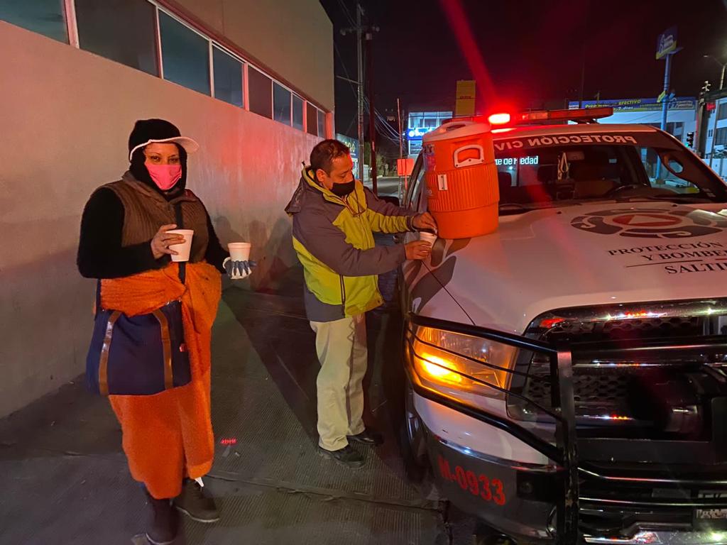 Dentro de las acciones de Operativo Abrigo, elementos de Protección Civil y Bomberos repartieron bebidas calientes y se mantienen coordinados con refugios temporales